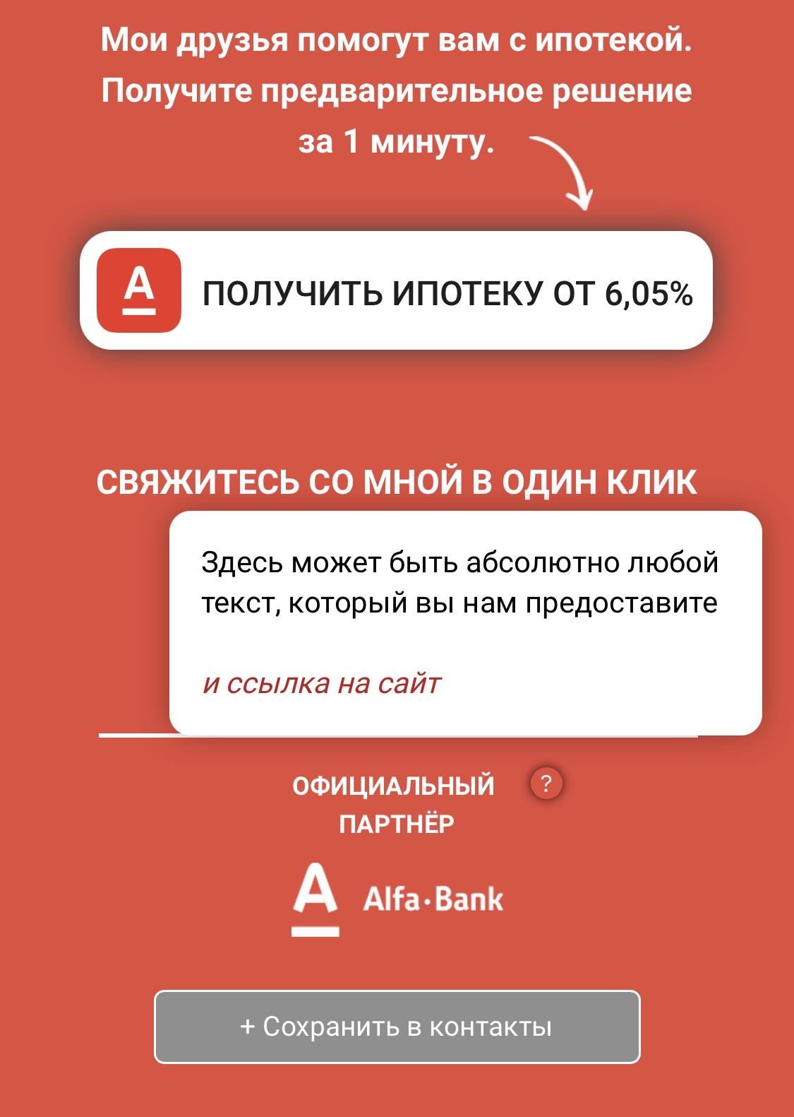 Это digital-инструмент нового поколения, который объединяет в себе сайт, мульти-ссылку и онлайн-визитку вашего партнёра.